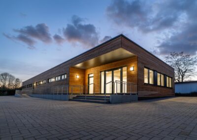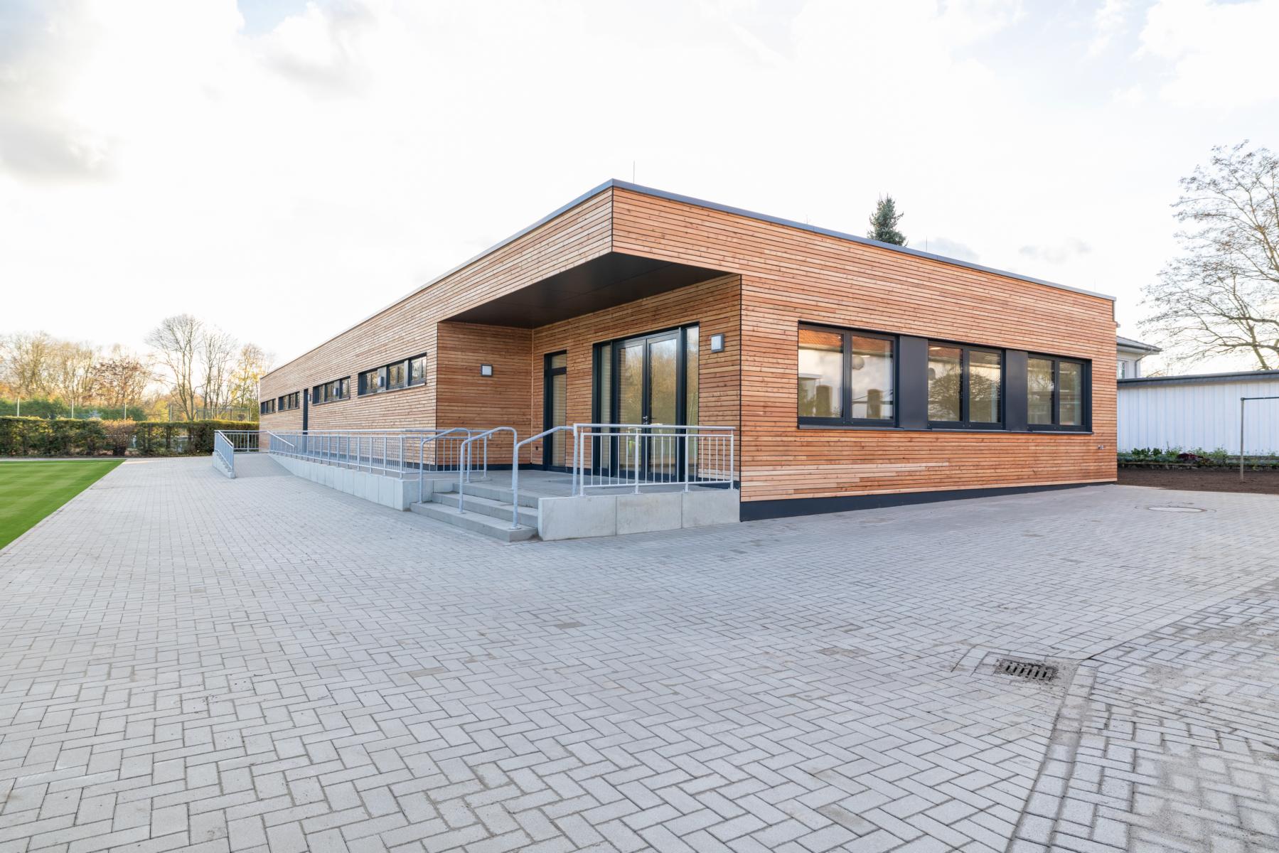 Der MBN-Modulbau realisierte im Auftrag der Stadt Osnabrück ein neues Funktionsgebäude für den Sportverein TuS Haste am Stadtrand von Osnabrück. Der schlüsselfertige Neubau wurde in hochwertiger Holzrahmenbauweise errichtet und umfasst eine Nutzfläche von 485 m².