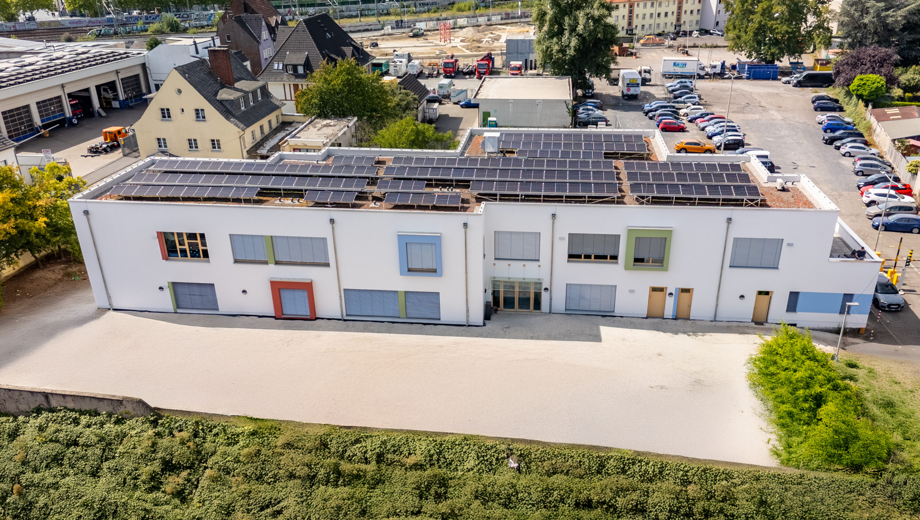 Die MBN-Niederlassung Frankfurt hat im Rhein-Sieg-Kreis den schlüsselfertigen Neubau der Kindertagesstätte „DRK“ realisiert. In Siegburg entstand im Auftrag der Stadtbetriebe Siegburg AöR eine sechsgruppige Einrichtung für das Deutsche Rote Kreuz. Der Neubau ersetzt die zuvor bestehende Kita auf demselben Grundstück. Nach dem Rückbau des Bestandsgebäudes blieben mehrere denkmalgeschützte Stützen und Wandscheiben erhalten, die anschließend in die Gestaltung der Außenanlagen integriert wurden.